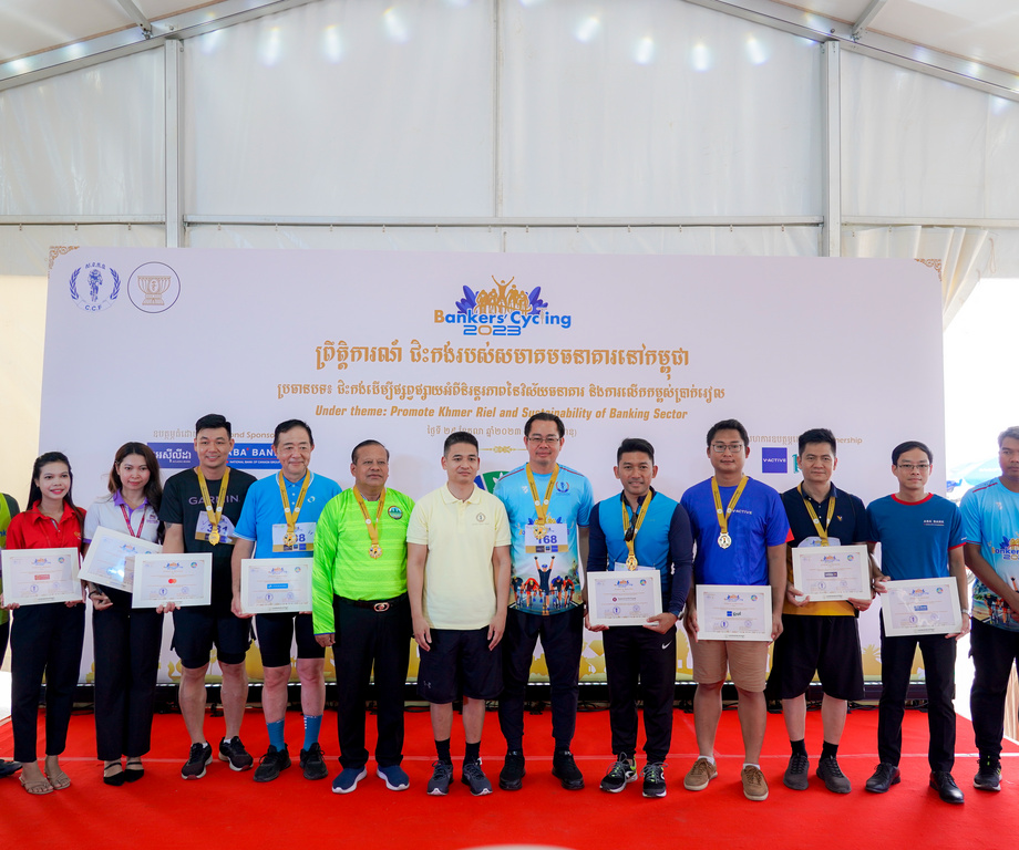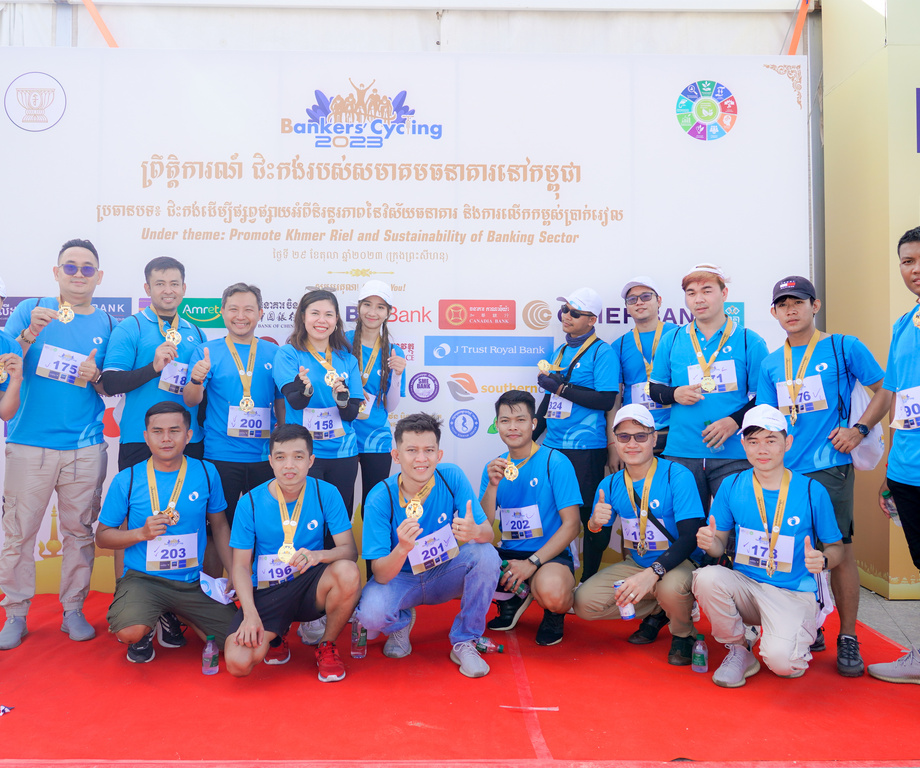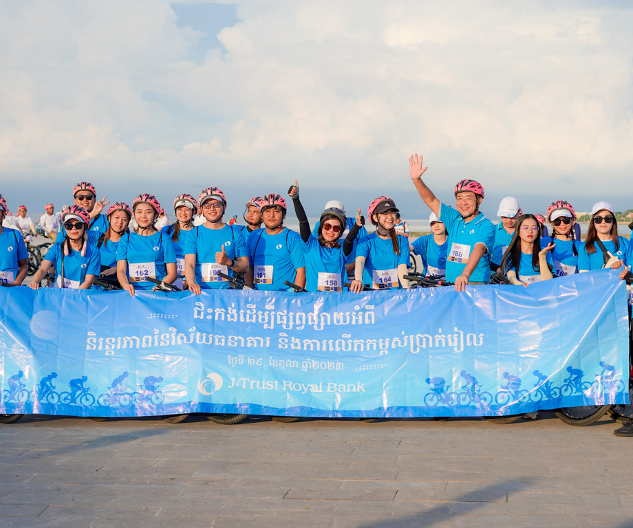 Sihanouk Ville, 29 October 2023, J Trust Royal Bank demonstrates the Bank’s support to the Association of Banks in Cambodia (ABC) by participating in the 2023 Banker’s Cycling event at Dragon's Tail (Sokha Beach) in Sihanouk Ville. The event aimed at promoting Khmer Riel and Sustainability of Banking Sector.