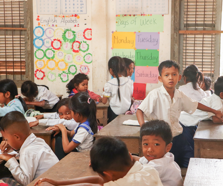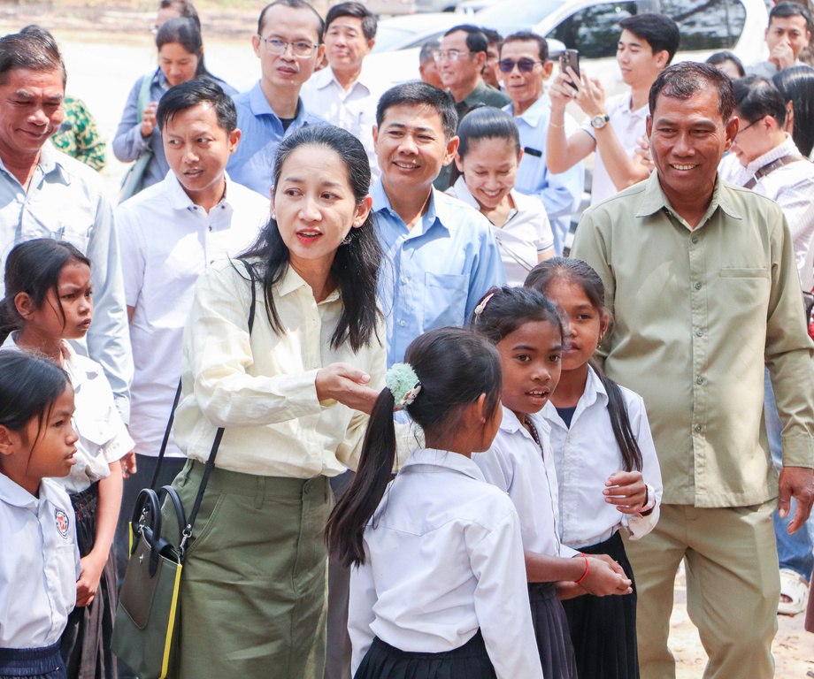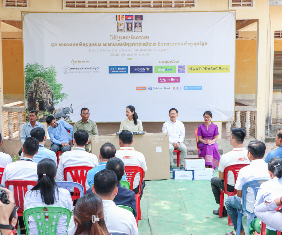 The donation was presented to three schools including Chramak Primary School, Kampong Chheuteal Primary School, and Kon Kaek Primary School, all located in Chroas Village, Sambor Commune, Prasat Sambor District and Kampong Thom Province, respectively, with honorable presence of H.E. Say Sam Ath, Deputy Governor of the National Bank of Cambodia (NBC).
