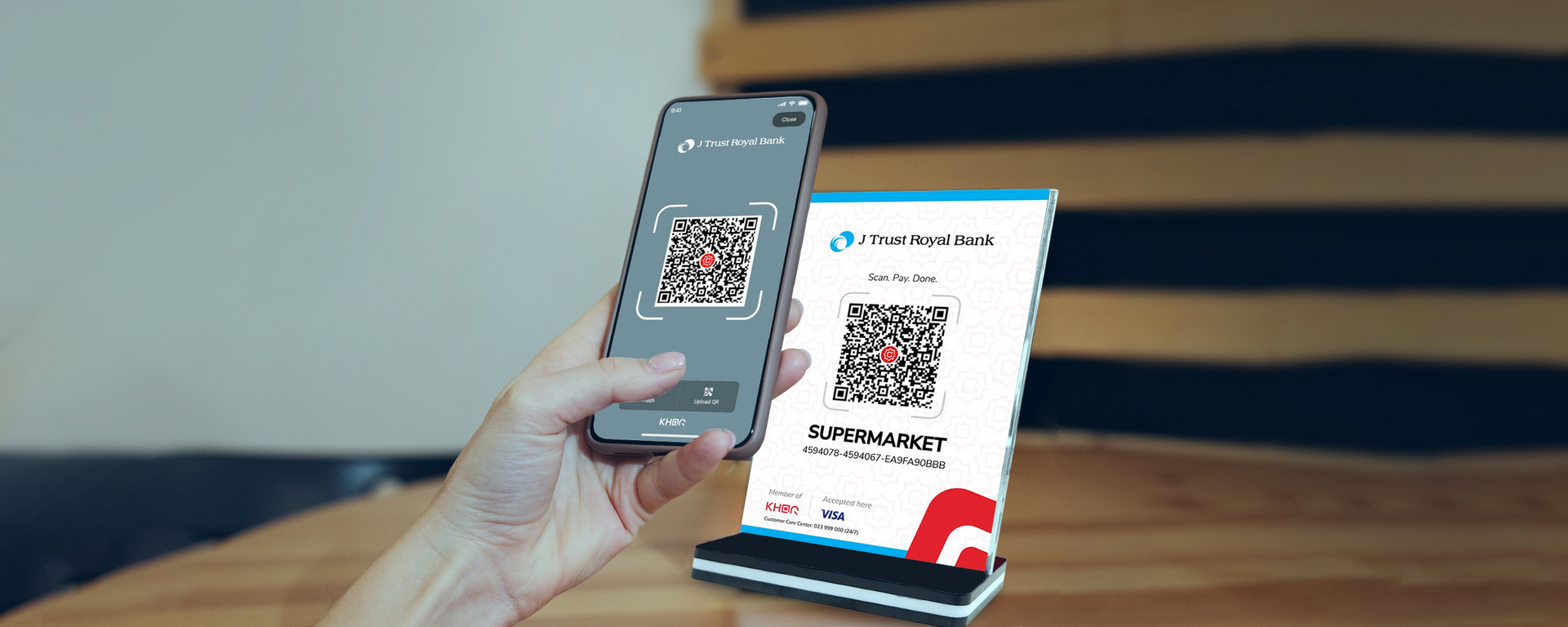- Receive or transfer fund instantly via JTRB KHQR in J Trust Royal Mobile app