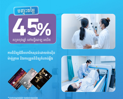 បញ្ចុះតម្លៃ 45% លើការពិនិត្យជំងឺមហារីកសុដន់ដោយម៉ាស៊ីនម៉ាម៉ូក្រាម និង ការត្រួតពិនិត្យកំហាប់ឆ្អឹង នៅមន្ទីរពេទ្យ អឃីត (បញ្ចប់)