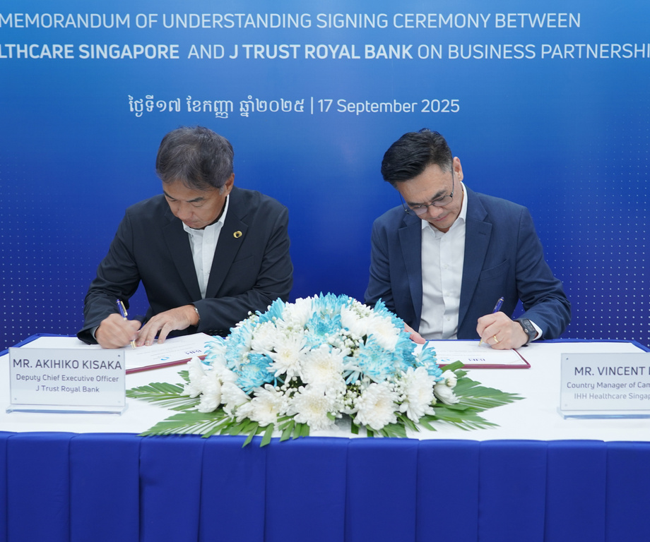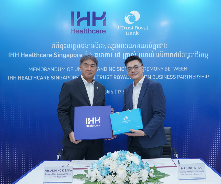 Phnom Penh, 17 September 2025 — J Trust Royal Bank and IHH Healthcare Singapore have officially entered into a strategic partnership aimed at advancing healthcare accessibility, enhancing well-being, and promoting overall health for the people of Cambodia. The signing ceremony, which took place at the IHH Healthcare Singapore-Cambodia office, was presided over by Mr. Vincent Lai, Country Manager of the IHH Healthcare Singapore-Cambodia Office, and Mr. Akihiko Kisaka, Deputy CEO of J Trust Royal Bank, alongside other senior management representatives from both institutions.
