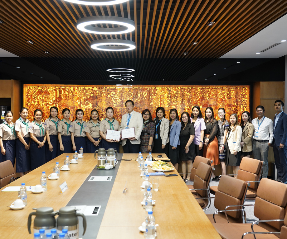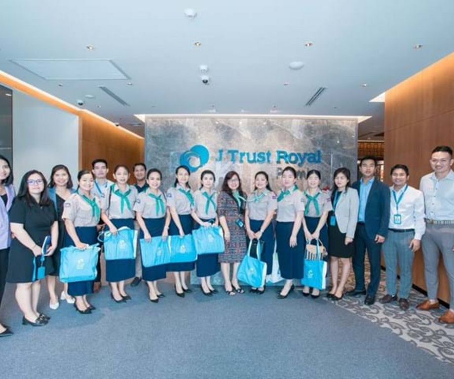 The MoU Signing Ceremony was hosted at J Trust Royal Head Office between Mrs. Chhov Phally, Deputy Chief Commissioner of the Girl Guides Association of Cambodia and Mr. Makoto Kurokawa, Deputy CEO of J Trust Royal Bank.