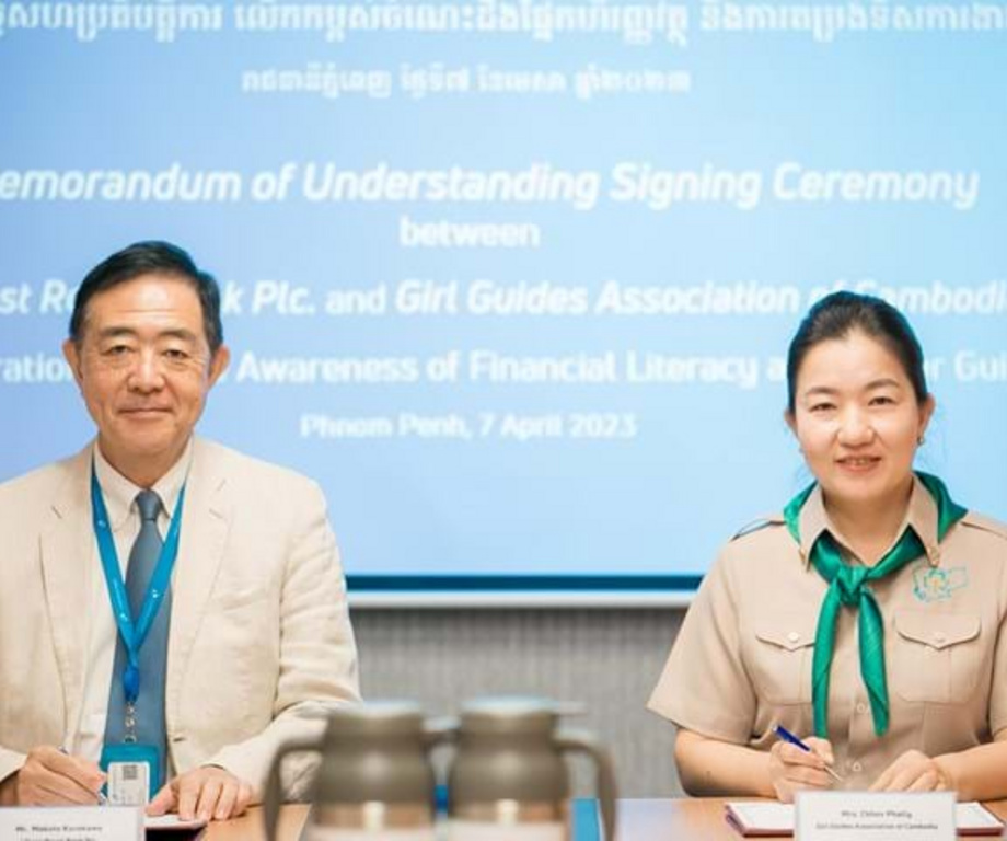 Phnom Penh, 07 April 2023 - J Trust Royal Bank signed a Memorandum of Understanding (MoU) with the Girl Guides Association of Cambodia to Raise Awareness of Financial Literacy and Career Guidance. Through this collaboration, J Trust Royal Bank will provide human resources & capacity for Financial Literacy Sharing sessions and technical support on Career Guidance to the targeted group.